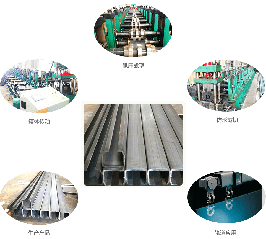 開(kāi)卷—導(dǎo)向進(jìn)料—輥壓成型—定尺切斷—托板出料