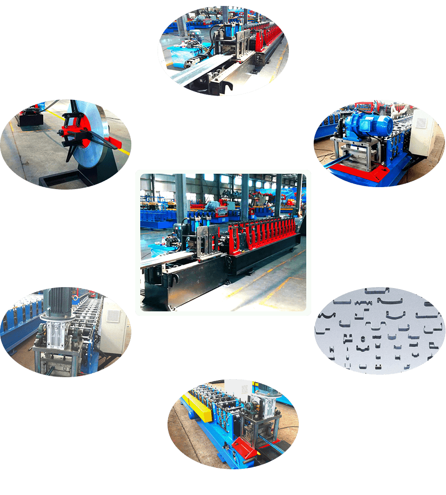 開卷—導向進料—輥壓成型—沖孔切斷—托板出料