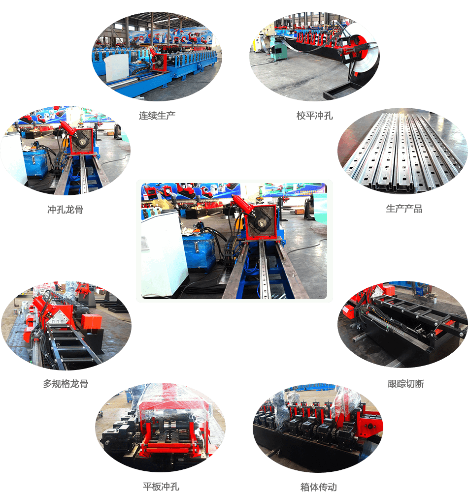 開卷→引料校平→儲料→伺服送料→平板沖孔→儲料→輥壓成型→仿形切斷→出料