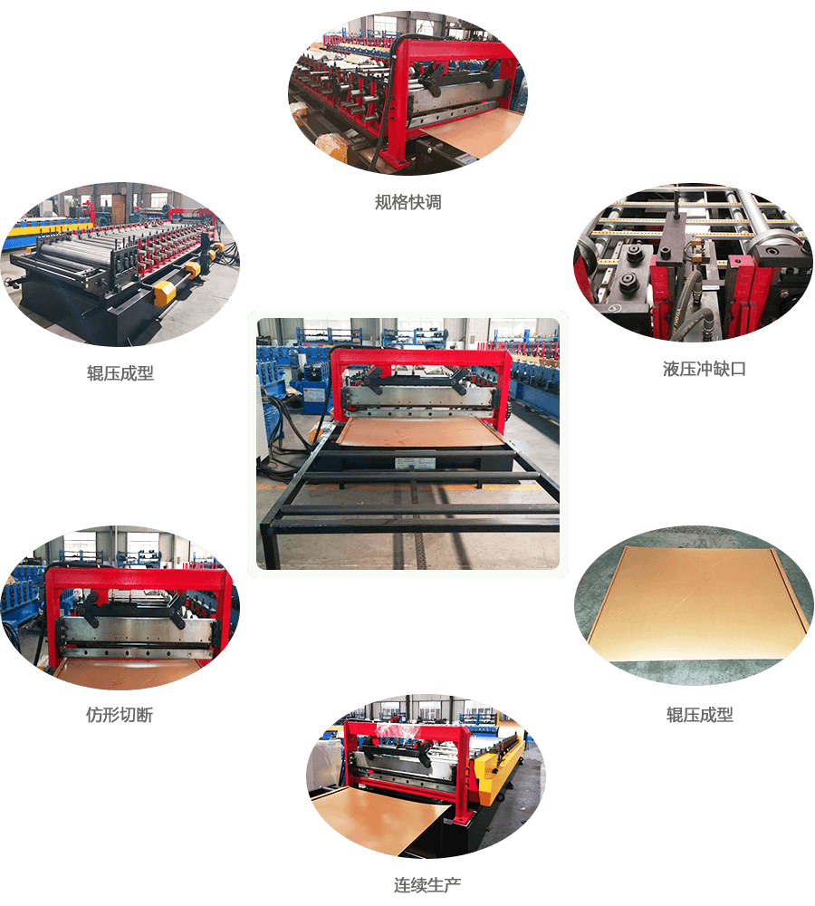 開卷→引料校平→輥壓成型、沖缺口→仿形切斷→成品出料