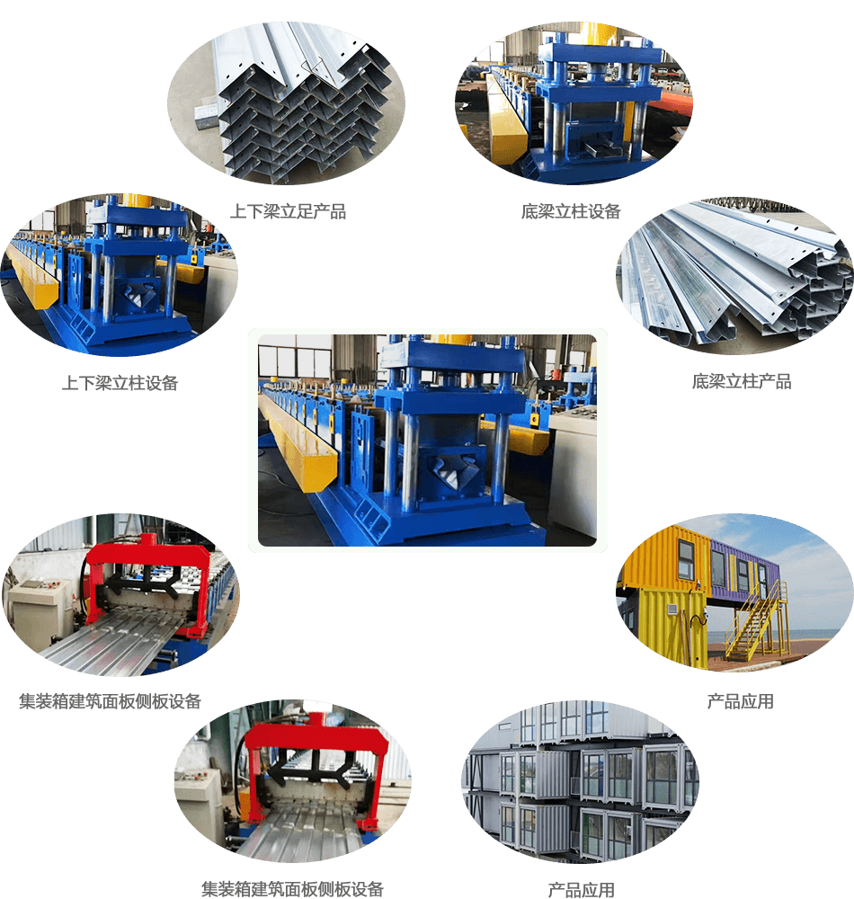 立柱設備:開卷→引料校平→平板沖孔→輥壓成型→仿型剪切→托料出板